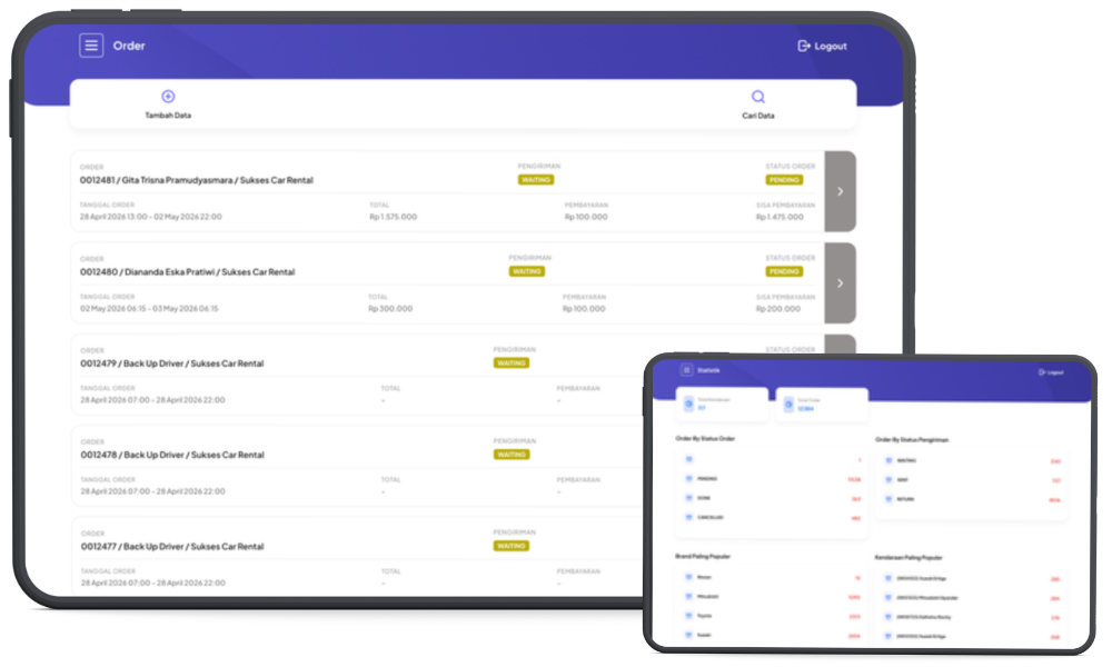 Sistem yang di rancang untuk mengelola order rental dan manajemen ketersediaan.